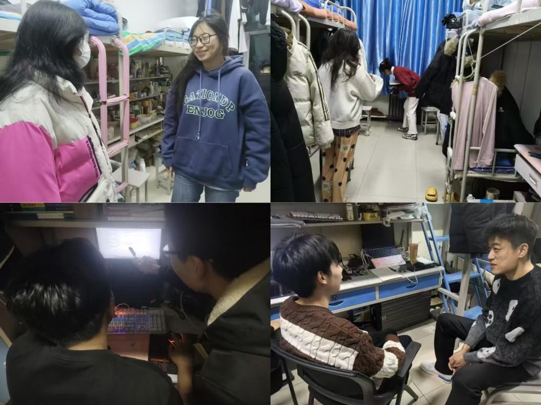 学生党员以朋辈身份深入宿舍,同步推进思想引领与安全保障工作。思想层面,通过分享成长经历、解读党的政策方针,引导学生树立正确“三观”;安全层面,实地查看宿舍卫生,排查违规用电、物品乱堆等隐患,讲解安全注意事项,还结合校园反诈案例,普及诈骗识别技巧与防范方法,提醒守护财产安全,切实营造整洁有序、安全和谐的住宿环境,助力学生强化安全意识、健康成长。