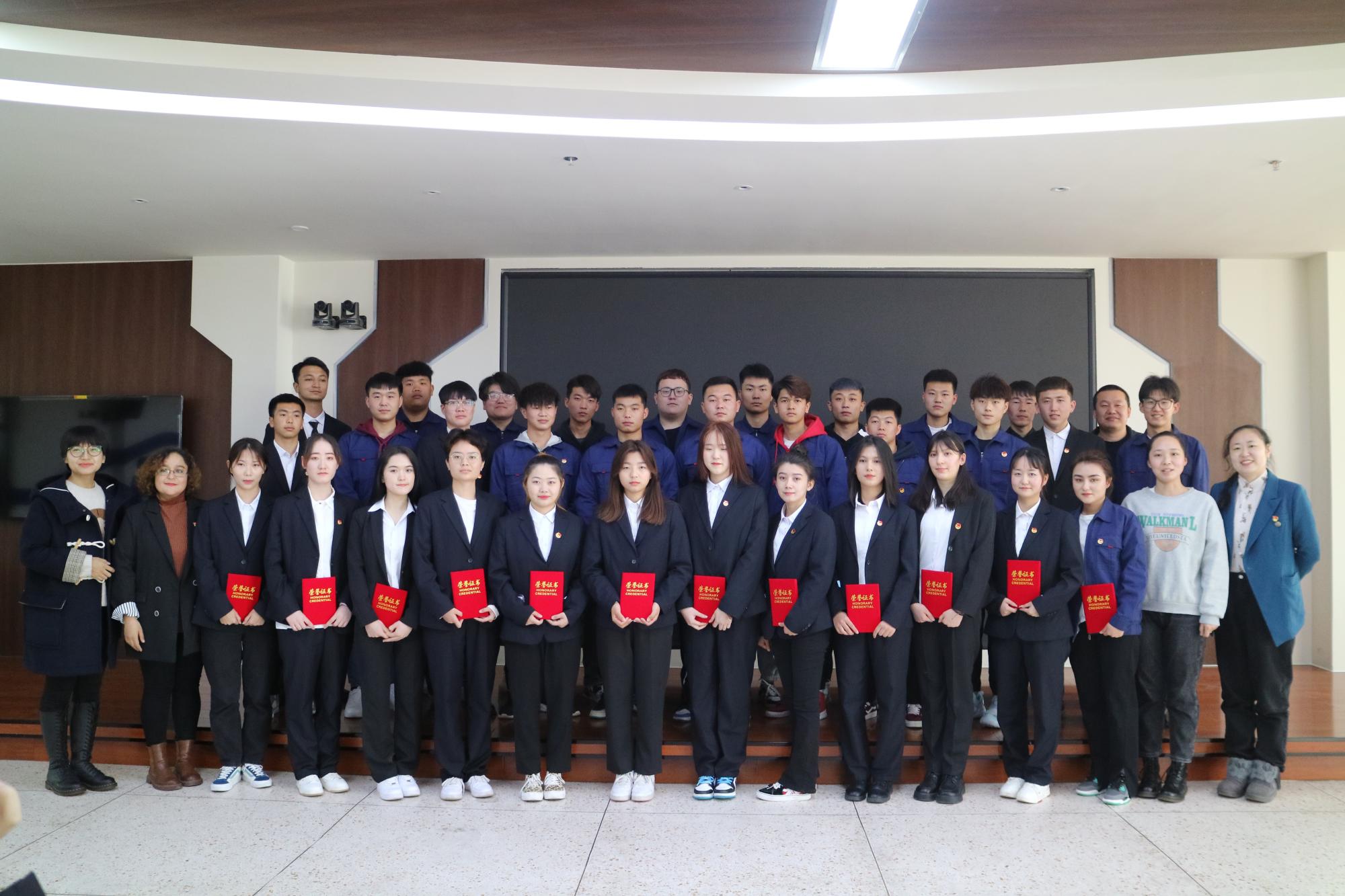 表彰大会在庄严的国歌中开始,共表彰优秀团学干部、干事34名同学,为9名学生干部颁发聘书。