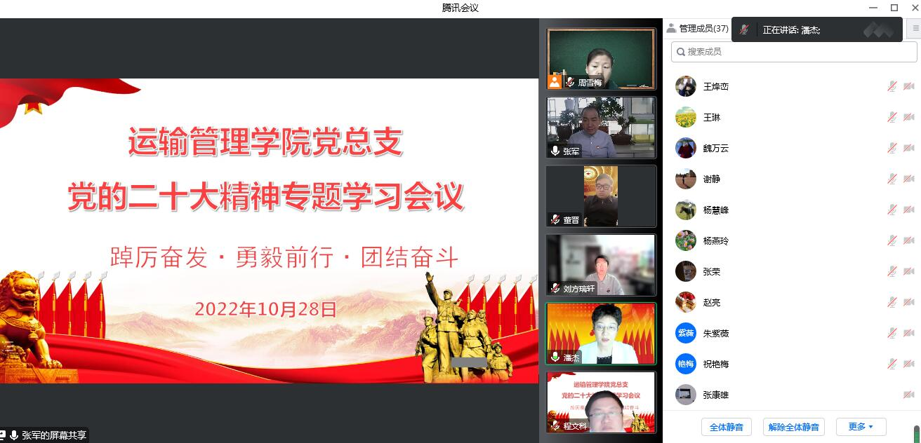 为学习贯彻党的二十大精神,运输管理学院党总支于10月28日下午,组织分院全体教职工召开“踔厉奋发·勇毅前行·团结奋斗——党的二十大精神专题学习线上会议。