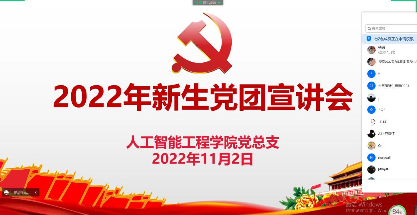 为引导2022级新生坚定理想信念,扣好大学第一粒扣子,同时加强新生入团入党知识教育,人工智能工程学院党总支学工党支部于11月2日下午,在线上开展了新生党团知识宣讲会,此次宣讲会面向分院全体22级新生,参会人数达500余人次。