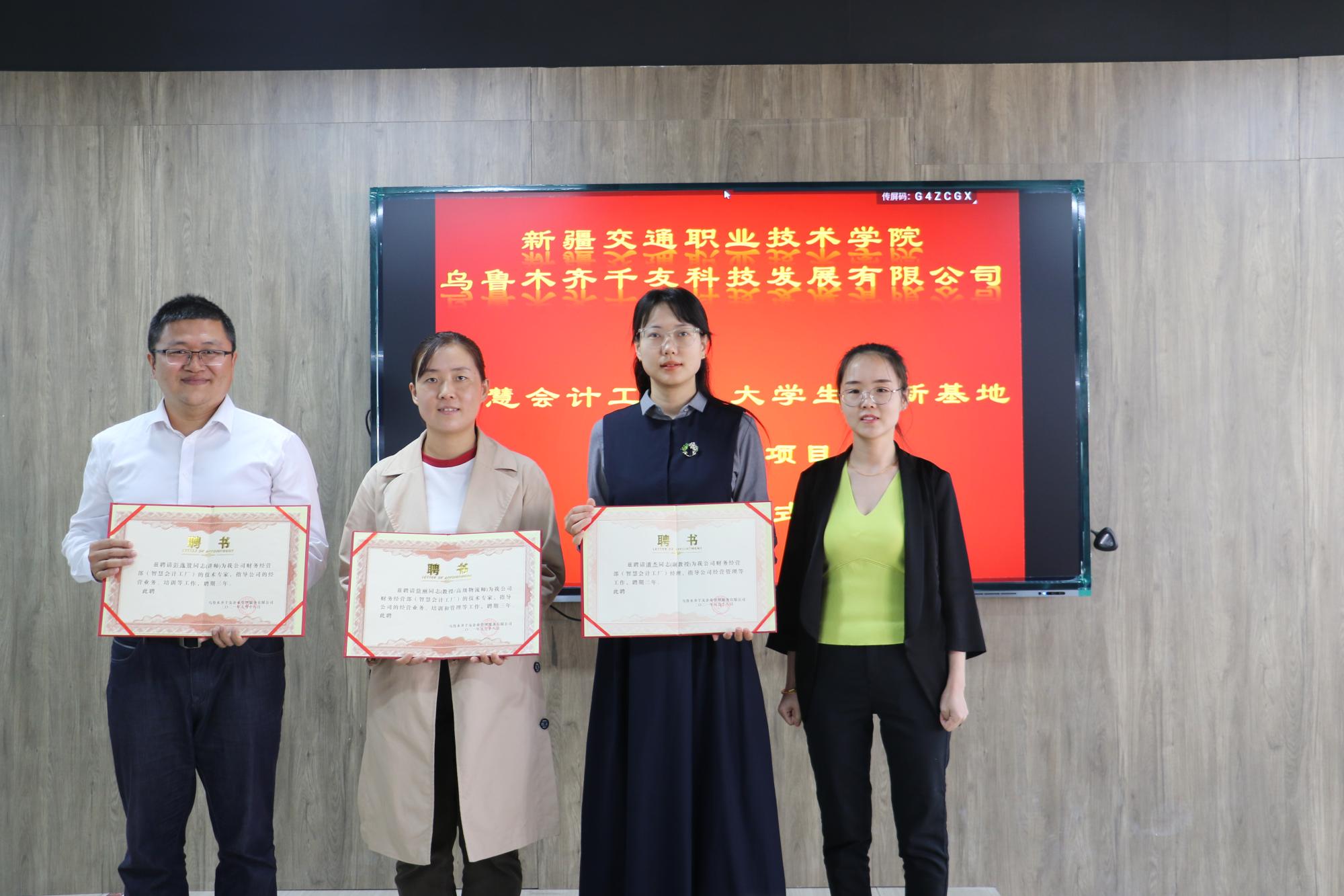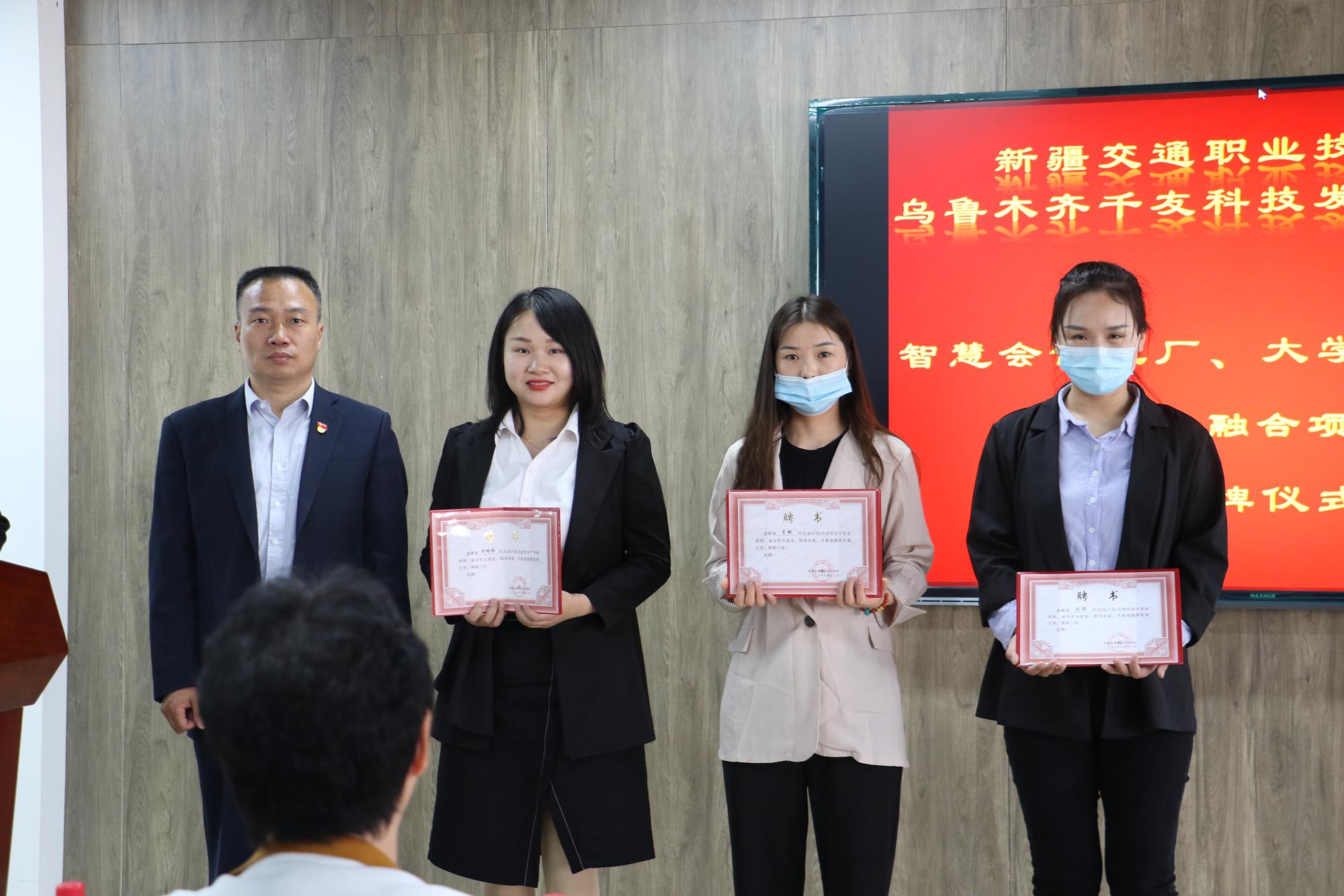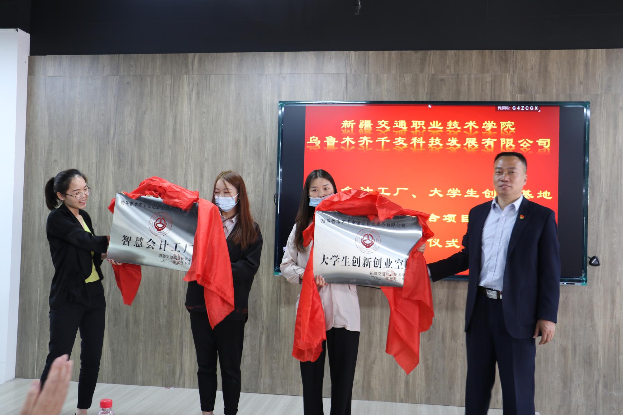 5月18日上午,学院与乌鲁木齐千友科技发展有限公司在产教融合楼401室举行了产教融合项目揭牌仪式。