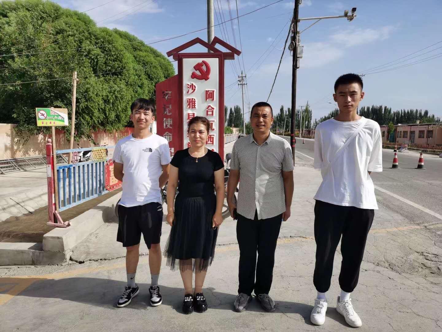预科1班吾尔肯·铁列克与驻村队员合影