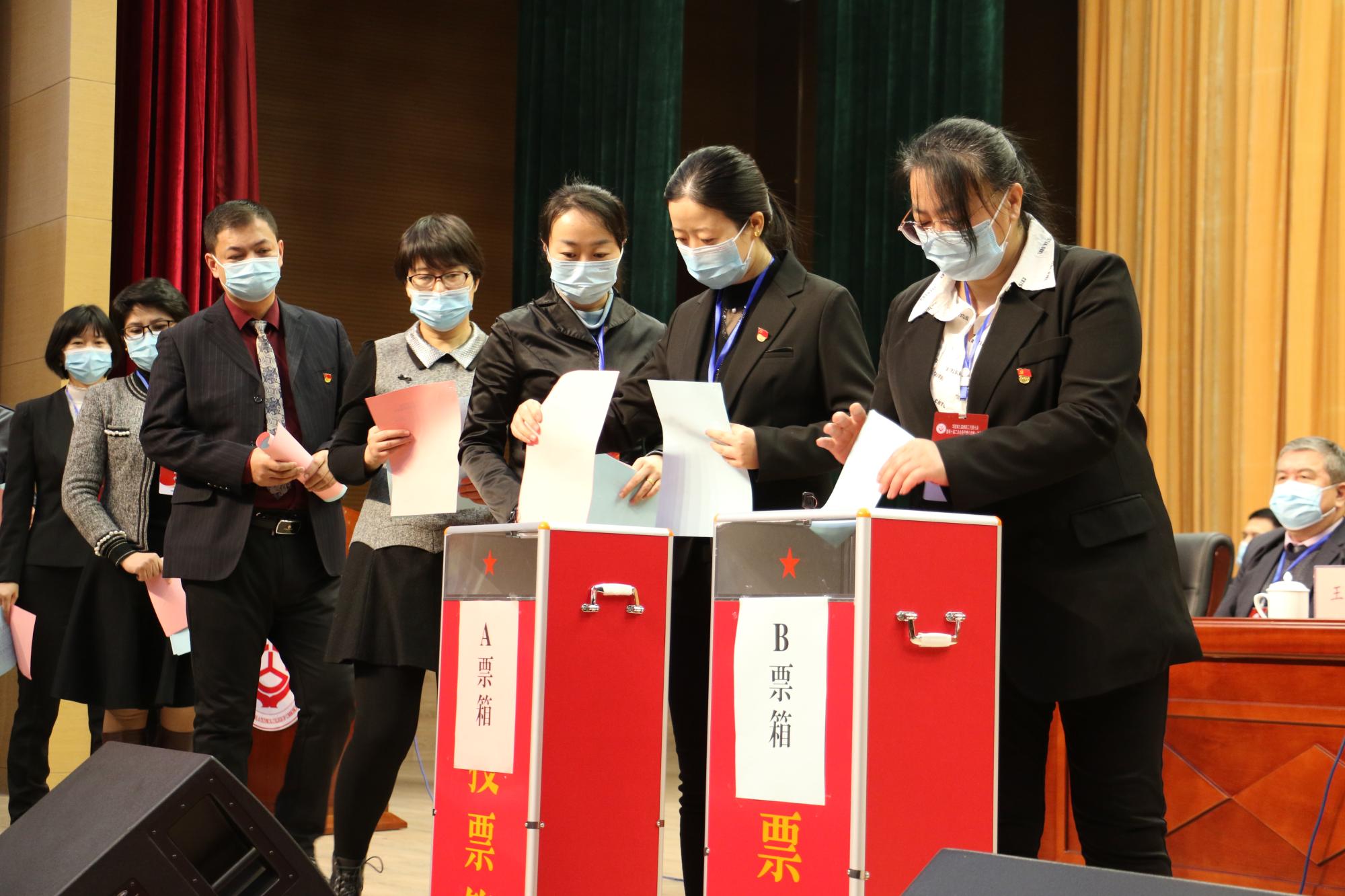 大会第二次会议分为两个阶段,第一阶段会议由学院党委委员、副院长徐长江主持。会议通过了《学院第九届教代会暨第十届工代会换届选举办法》及监票人、计票人名单;选举出“两代会”相关委员会委员,表决通过了《学院工会工作报告》《学院工会审查报告》《大会决议》等。