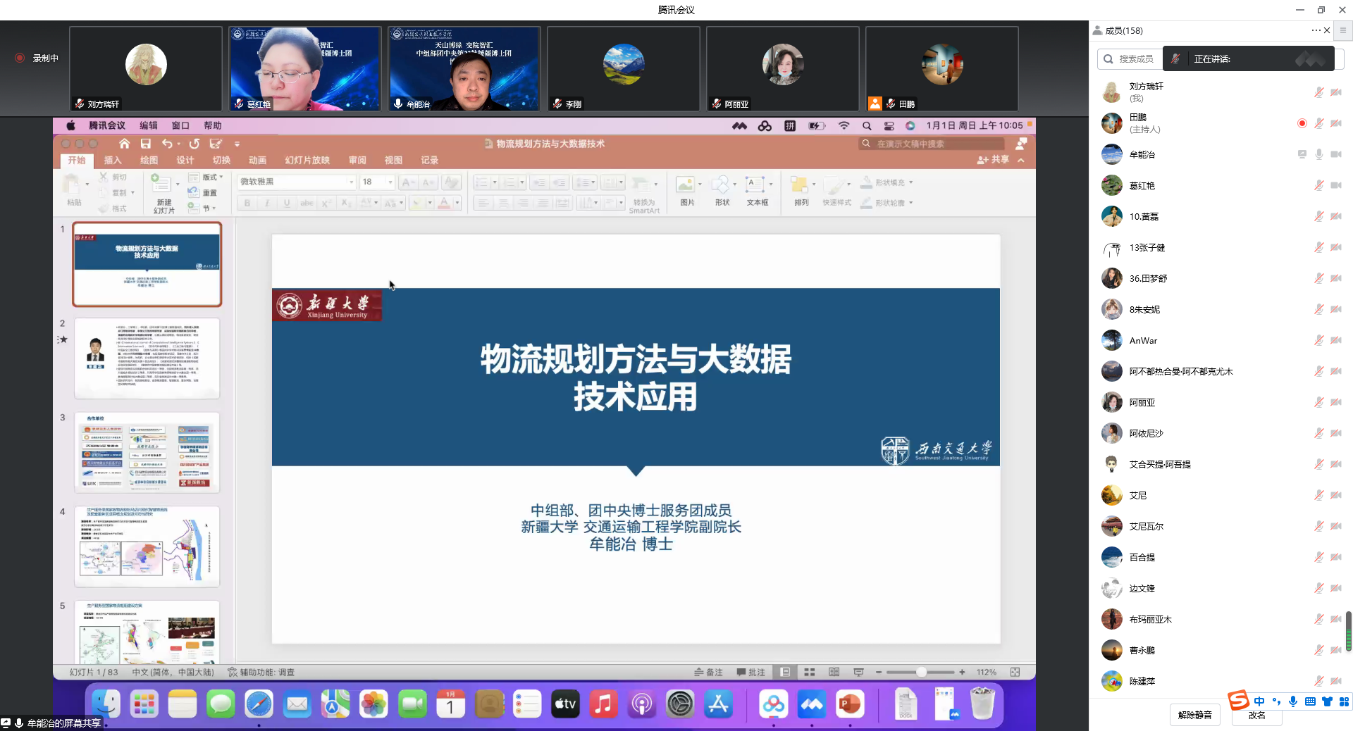 为全面贯彻落实习近平总书记关于加快建设交通强国的重要论述精神,推动交通物流融合发展,做好新疆现代流通领域人才培养工作,1月1日上午,“天山博缘 交院智汇”中组部团中央第22批援疆博士团成员牟能冶与交院师生相聚“云”端,为大家带来一场精彩讲座。
