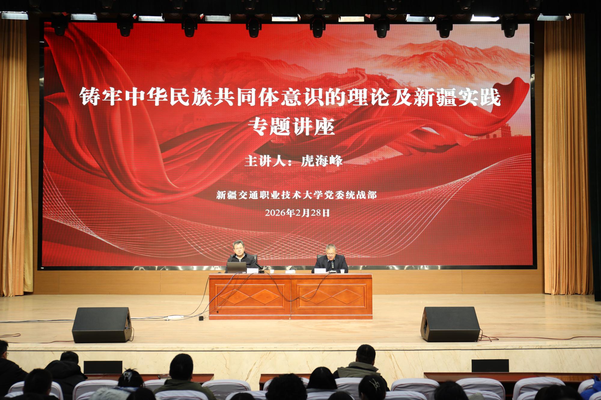 2月28日,新疆社会科学院民族研究所党支部书记、所长虎海峰研究员应邀到校,为全体教职工作铸牢中华民族共同体意识专题讲座。校党委常委、统战部部长曹兴举主持讲座。