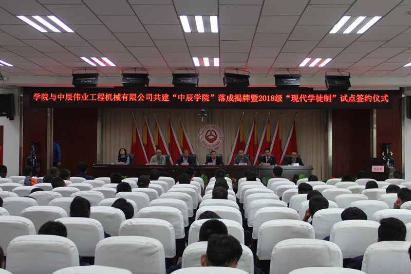 学院与中辰伟业工程机械有限责任公司共建“中辰学院”落成揭牌暨2018级“现代学徒制”试点签约仪式隆重举行
