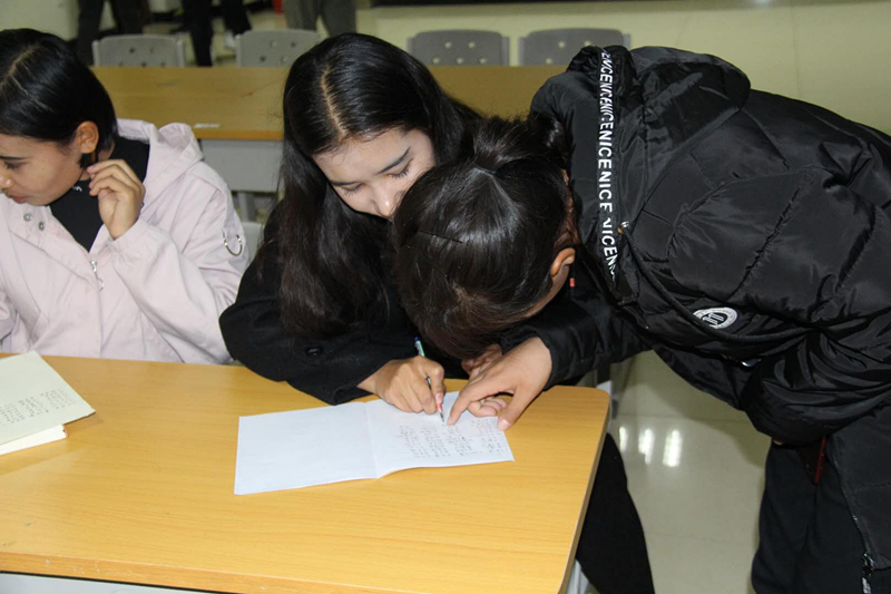 活动开始,由领读员带领大家朗诵《三字经》,同时为大家讲述了《三字经》的历史背景和中华民族的传统文化。道桥D175-2的艾克热木同学说:“这次活动让我学到了很多,也让我认识了好几位新朋友,非常荣幸能成为国语角的一员!”他还表示会继续努力,不断提升国语水平,同时也会帮助班里其他同学共同进步。随后,领读员也鼓励在场的同学们:“要不断加强国语学习,在比、学、赶、帮、超的氛围中共同进步,为今后学习专业课程打好语言基础。希望每一位学生都能站到领奖台上,都是学习国语的佼佼者”。