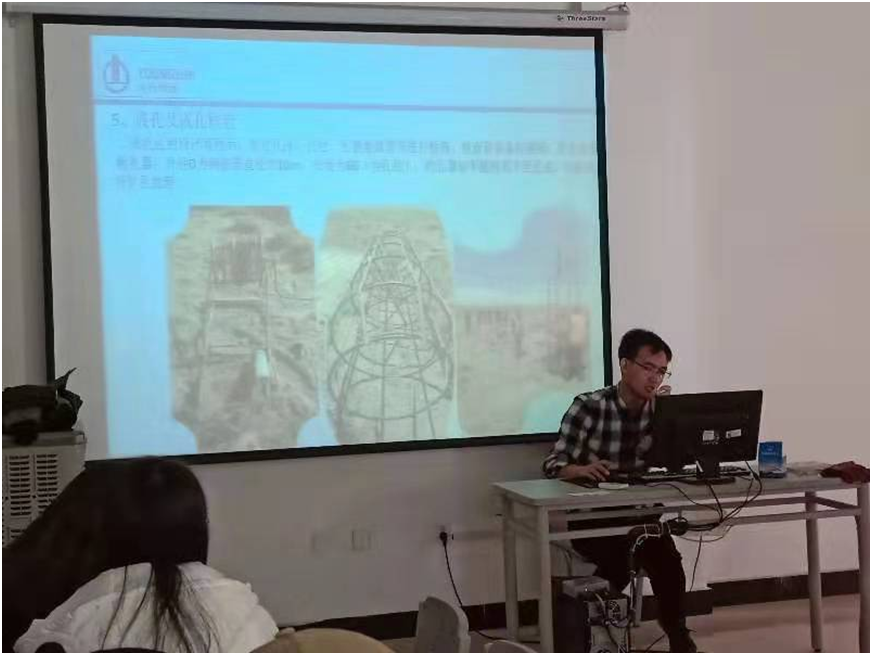 岳维军向学弟学妹们做了题为“桥梁下部构造施工工艺”的专题讲座,向学弟学妹们详细介绍了国道216线恰库尔图镇至马依喀腊段公路工程项目中桥梁桩基、墩台施工的工艺流程、质量控制要点、施工过程中的常见问题及处理措施。铁道D181班本学期正在开设《桥涵施工与维护》课程,同学们有一定的桥涵施工理论基础,对讲座表现出浓厚的兴趣,听得很认真,时不时还向学长提问,互动交流。讲座后,同学们还围着学长就实习、就业等相关问题进行了咨询。岳维军耐心地为学弟学妹们答疑解惑,使学弟学妹们对行业人才需求等有了更深入的了解。